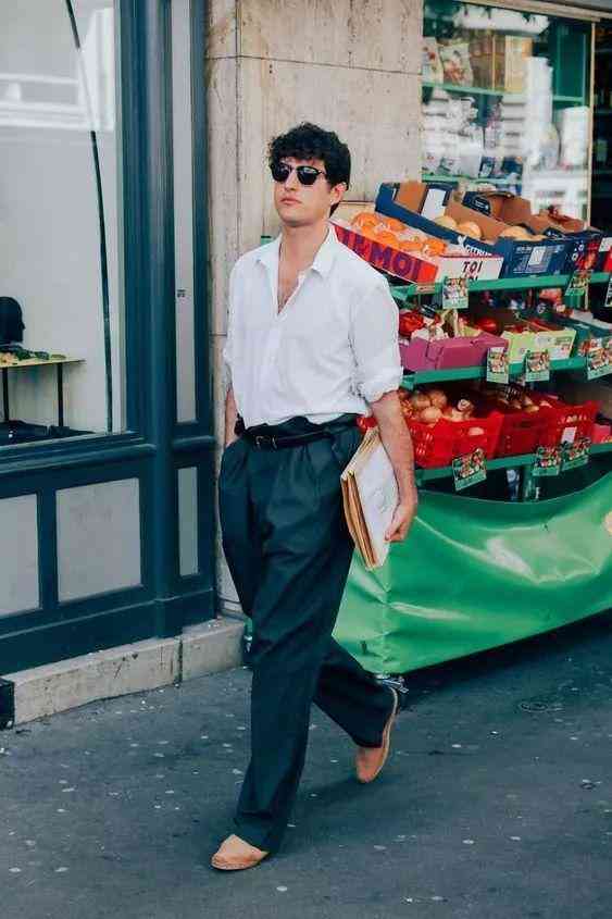 白襯衫主張簡約,紙袋褲則更挑人,一般男生不敢輕易嘗試。