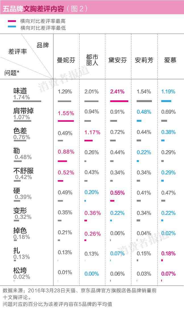 從消費者的口碑統(tǒng)計數(shù)據(jù)來看,在對比測評中獲得優(yōu)良評價的愛慕和安莉芳,依然以較低的差評率占據(jù)口碑榜單的上游。