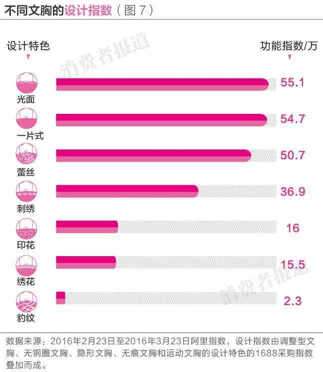 而在設(shè)計特色上,光面、一片式和蕾絲文胸是消費市場一線梯隊。(如圖7)