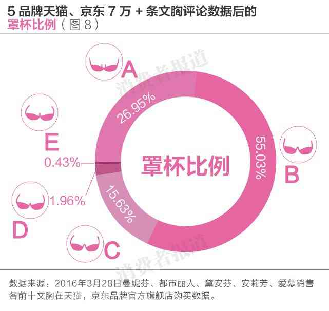 《消費者報道》試圖以小見大,通過在曼妮芬、都市麗人、黛安芬、安莉芳、愛慕五品牌在天貓,京東的官方旗艦店七萬多條購買數(shù)據(jù),分析女性對文胸的“色”取向和罩杯大小。