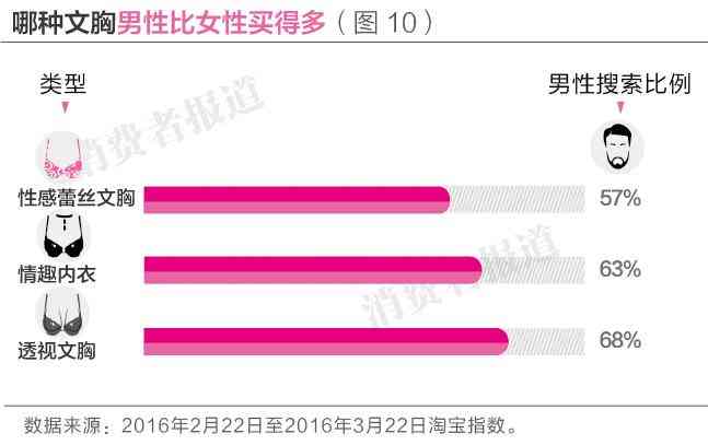 和其他文胸相比,男同胞果然更喜歡給女性買性感蕾絲文胸、情趣內(nèi)衣、透視文胸這些具備調(diào)情功能的文胸。(如圖10)