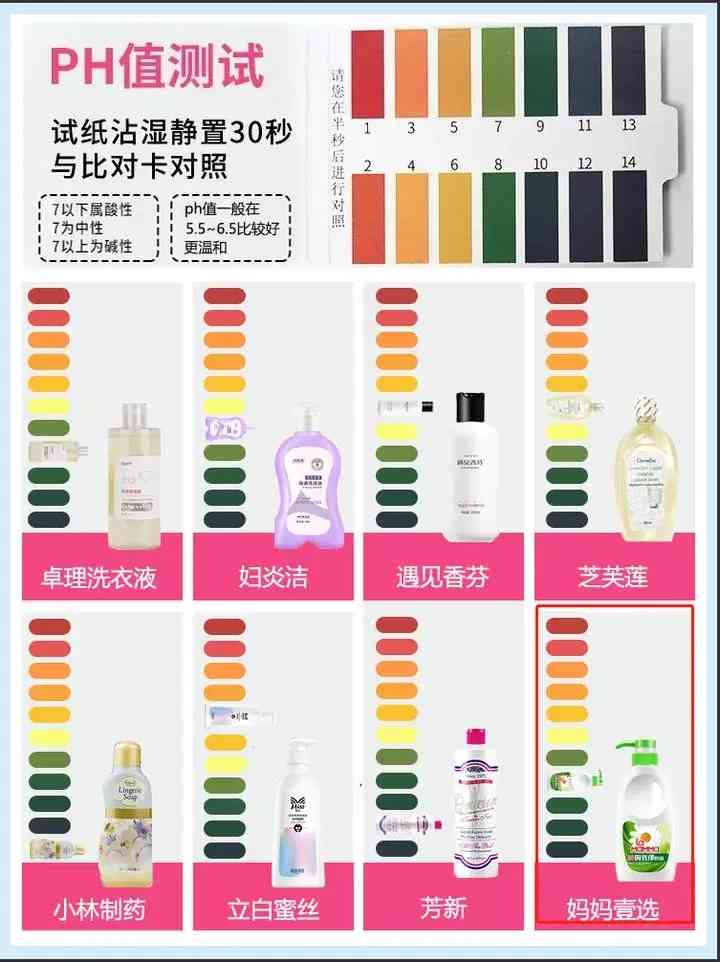 從PH值來看,立白蜜絲最貼近私處PH;其次遇見香氛、芝芙蓮也呈弱酸性;婦炎潔、卓理和媽媽壹選這三款呈中性;最讓我意想不到的是小林制藥和芳新,PH值偏堿性,對(duì)私處刺激性還是較大的。