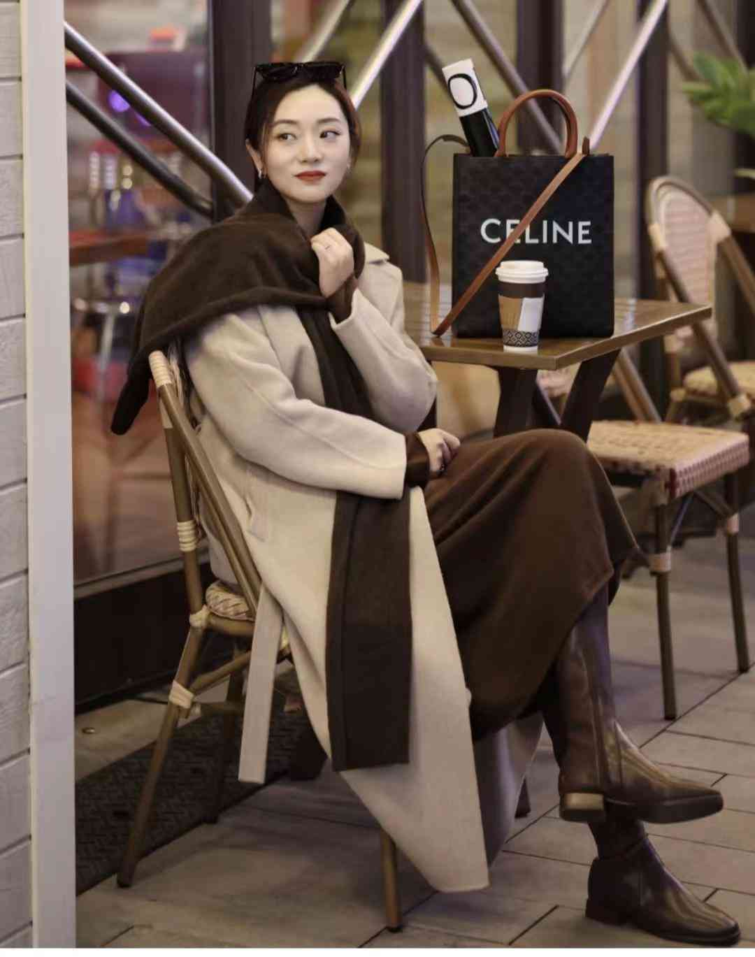 燕麥色大衣+棕色羊毛長(zhǎng)裙,同色系深淺不一的疊穿凸顯了層次感,又兼具了法式簡(jiǎn)約優(yōu)雅的質(zhì)感,加之長(zhǎng)靴圍巾等細(xì)節(jié)的點(diǎn)綴,高級(jí)時(shí)髦又不失溫度的,毫不費(fèi)力就可以輕松get~