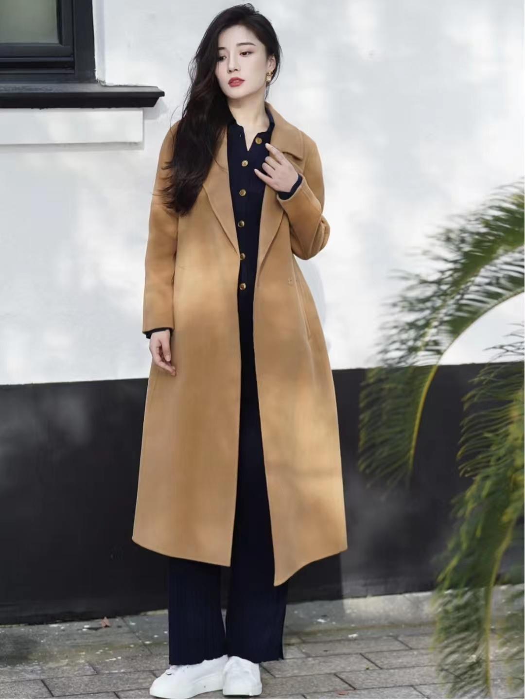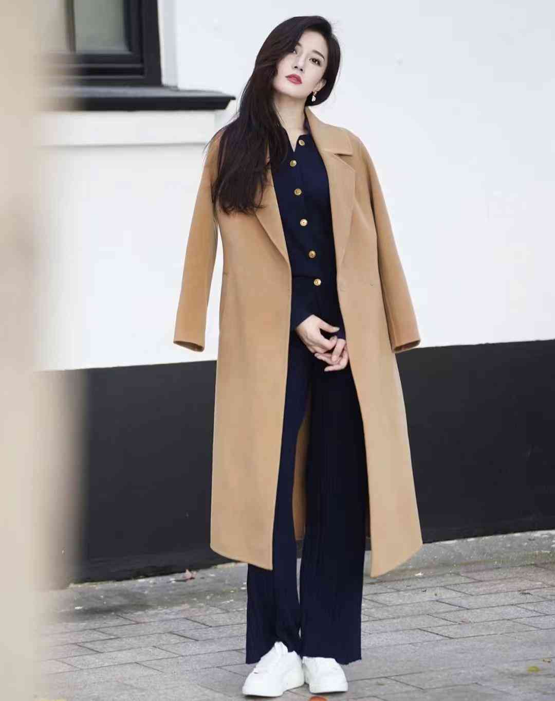 look6 駝色大衣+藏藍(lán)色修身套裝/小白鞋
