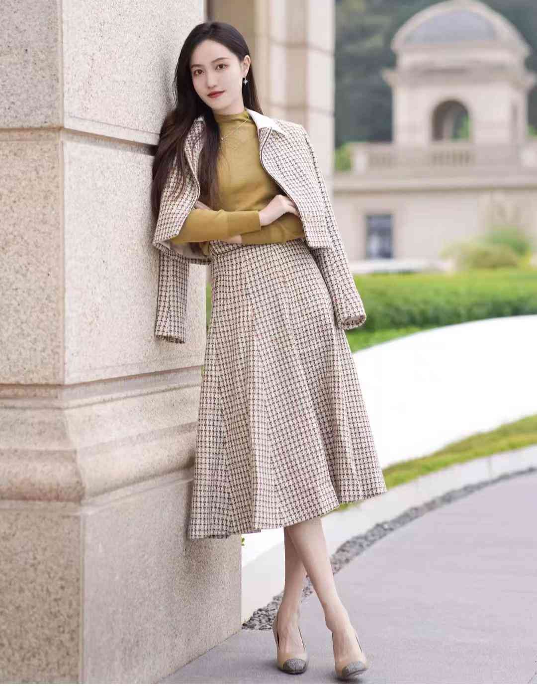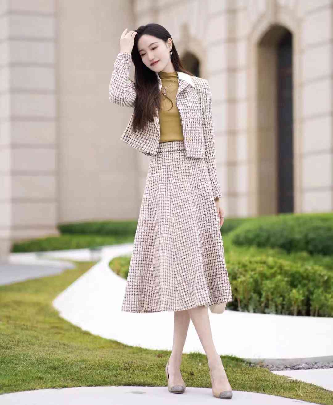 look7 格紋小香風(fēng)套裙+高領(lǐng)打底/高跟鞋