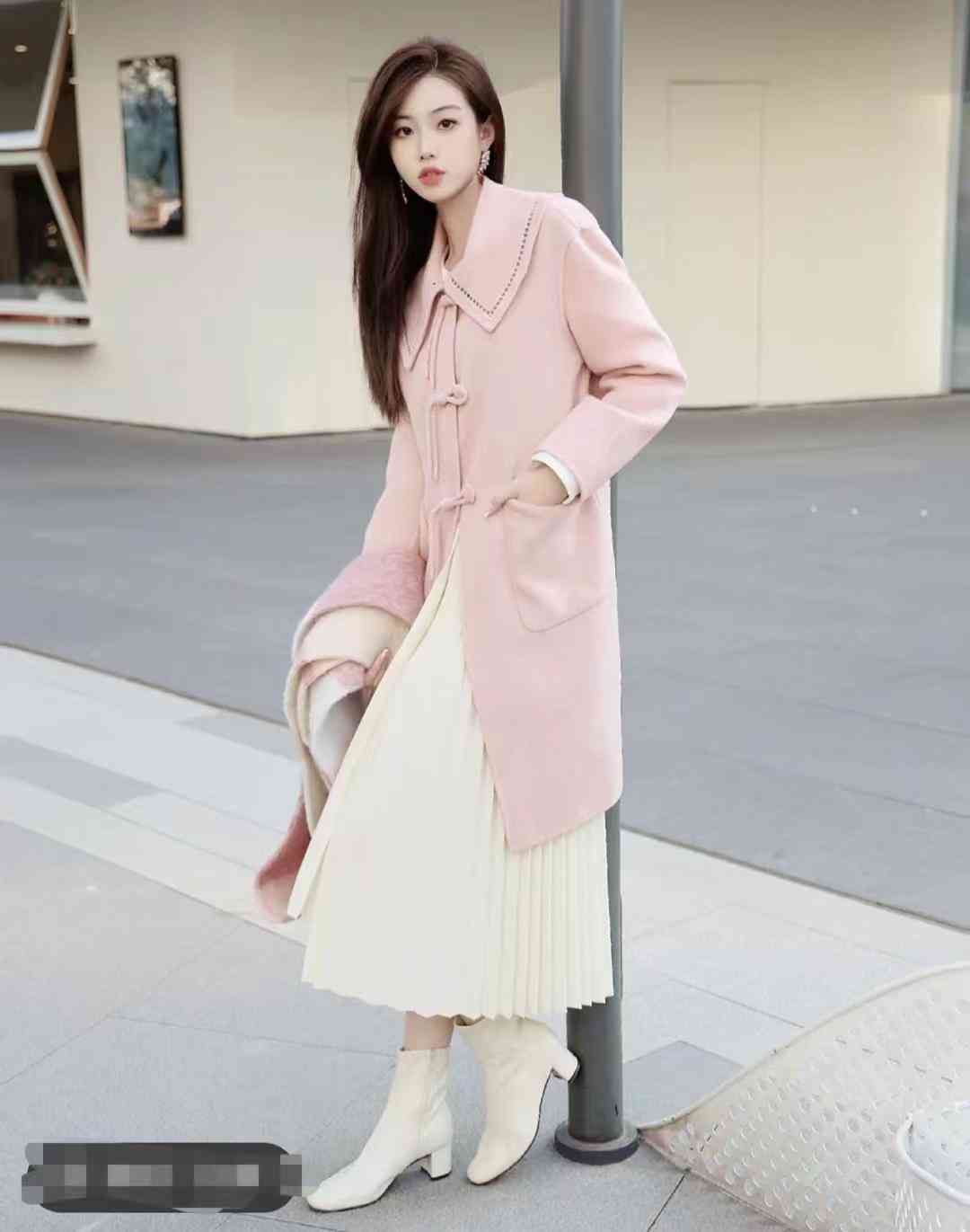 低飽和度的粉簡(jiǎn)直是溫柔本柔,米白色與粉色的搭配,搭配上圍巾秋冬氛圍感滿滿,再搭配一雙米白色粗跟短靴,配飾同樣選擇了粉色系,一整套真的有種歲月靜好的溫柔~