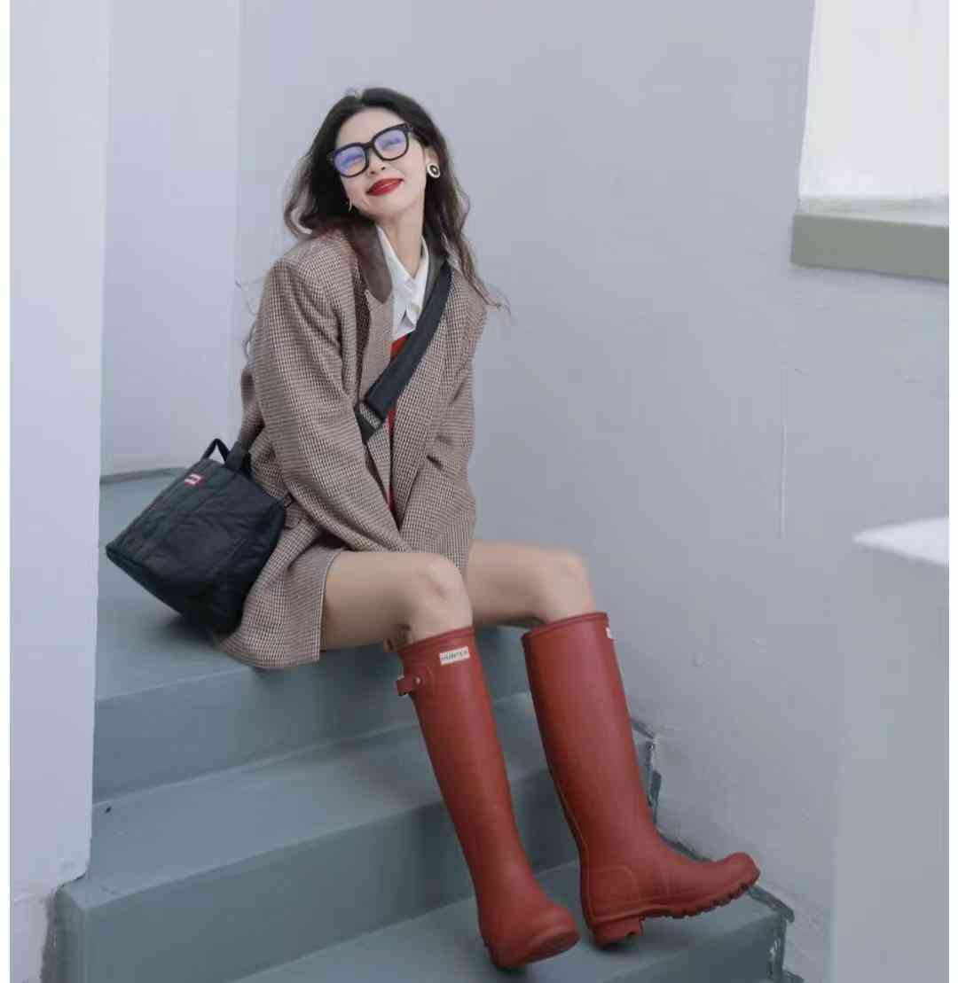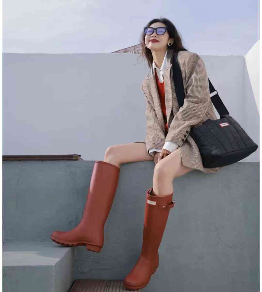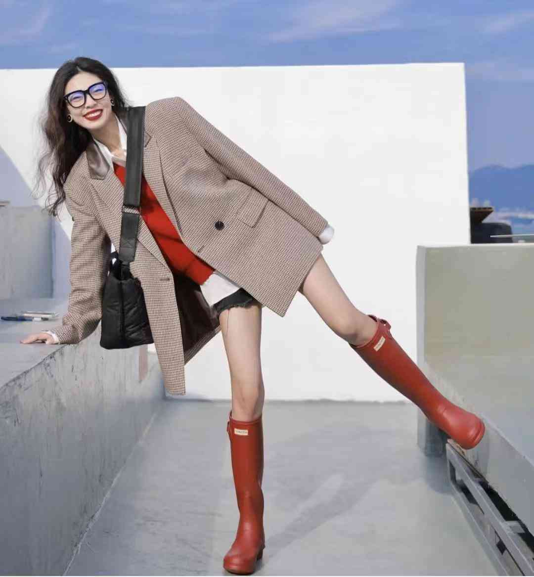 外套:marllen,內(nèi)搭:酒午,紅靴和包包:Hunter