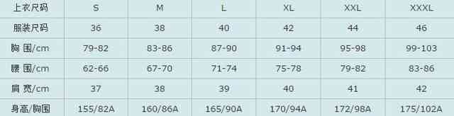 衣服尺碼對照表S、M、L、XL、XXL、XXXL男女標準大小尺碼