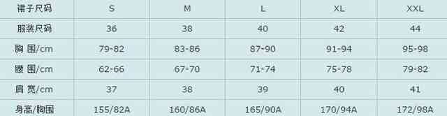 服裝號型標志:號型的表示方法為號與型之間用斜線分開,后接體型分類代號。例如:上裝160/84A,其中160為身高,代表號,84為胸圍,代表型,A代表體型代號;下裝160/68A,其中160為身高,代表號,68為腰圍,代表型,A代表體型代號。本尺碼對照表僅作參考之用。請您在試穿之后量身選擇適合自己的尺寸。