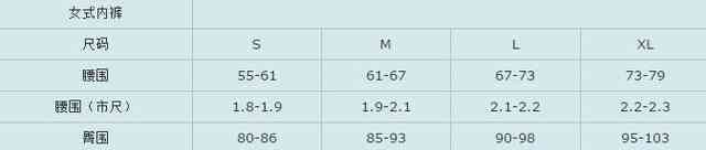 女式內(nèi)褲尺碼表