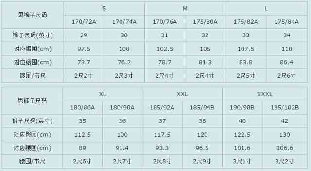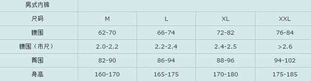 男式內(nèi)褲尺碼表