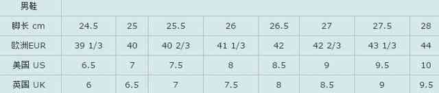 男鞋尺碼表