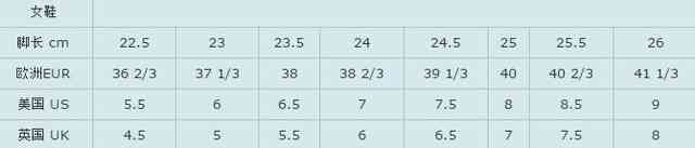女鞋尺碼表