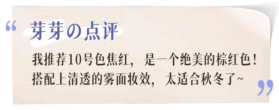 獲獎的色號是N°302赤裸豆沙,薄涂更偏溫柔的豆沙色,很適合搭配素顏。厚涂紅調(diào)更明顯,所以很特別提氣色!