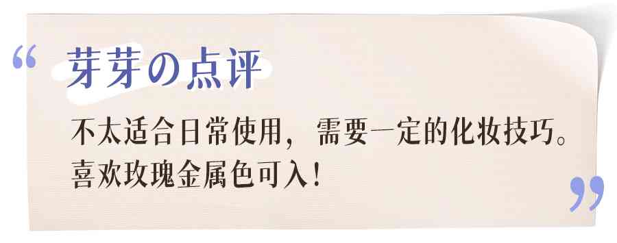 54號是個很特別的玫瑰金屬色,金屬的質(zhì)感很重,感覺稍微有點點夸張。不過用起來很絲滑,防水效果也是杠杠的~