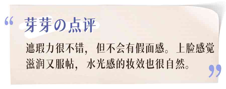 不是那種油潤的質(zhì)地,但用起來很滋潤,而且延展性出奇得好,也特別輕薄。很適合遮蓋像黑眼圈這類瑕疵,眼下不會卡紋。
