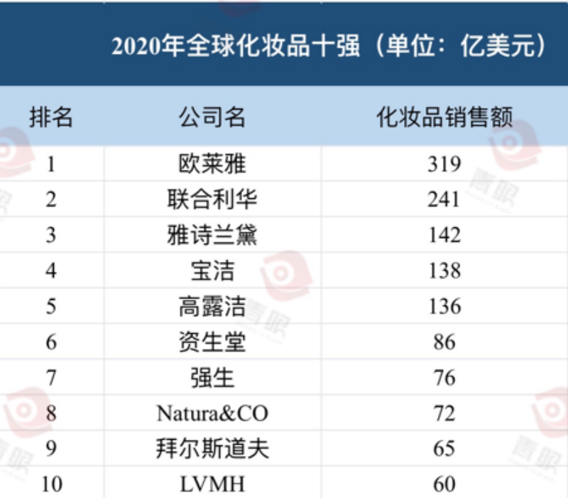 雅詩(shī)蘭黛集團(tuán)財(cái)報(bào)的公布,也揭開了2021年上半年全球十大化妝品企業(yè)的“面紗”。