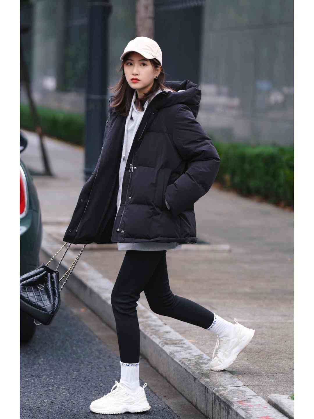 羽絨服也能穿出“運(yùn)動風(fēng)”的既視感來,下面這套的搭配技巧就很值得我們借鑒學(xué)習(xí)了,外套的是一件黑色的羽絨服,內(nèi)搭選擇胡思而的衛(wèi)衣,下裝是一條瑜伽褲和白色運(yùn)動鞋,用鴨舌帽點(diǎn)綴一下,整個造型的“運(yùn)動”元素不就馬上呈現(xiàn)了。