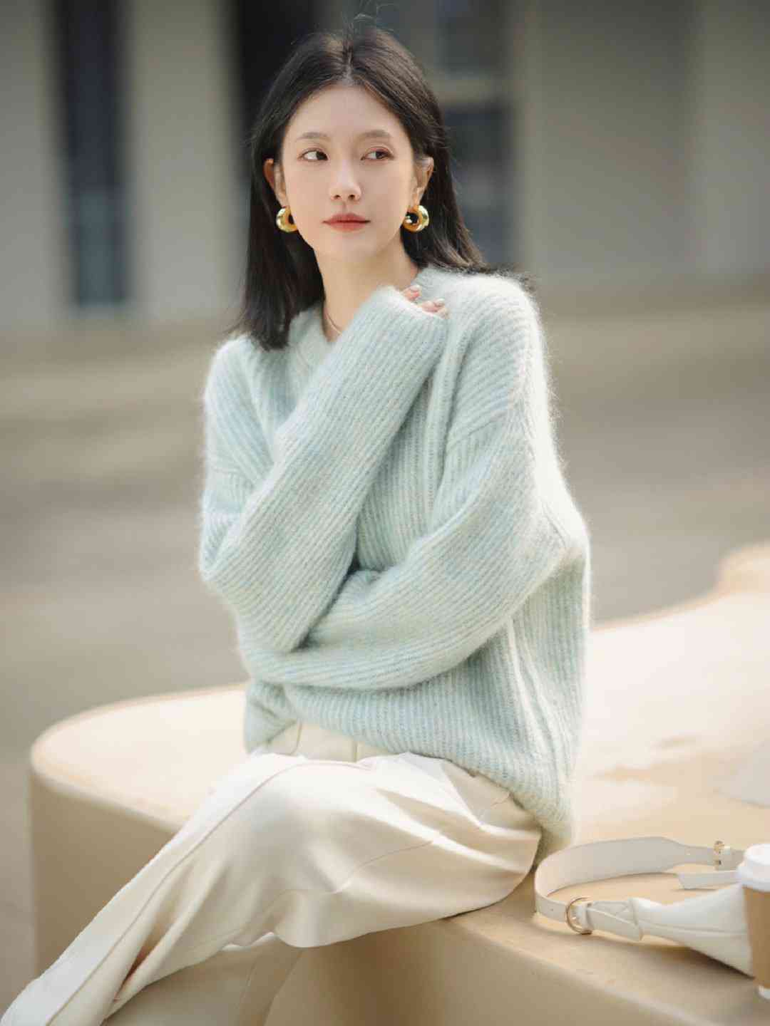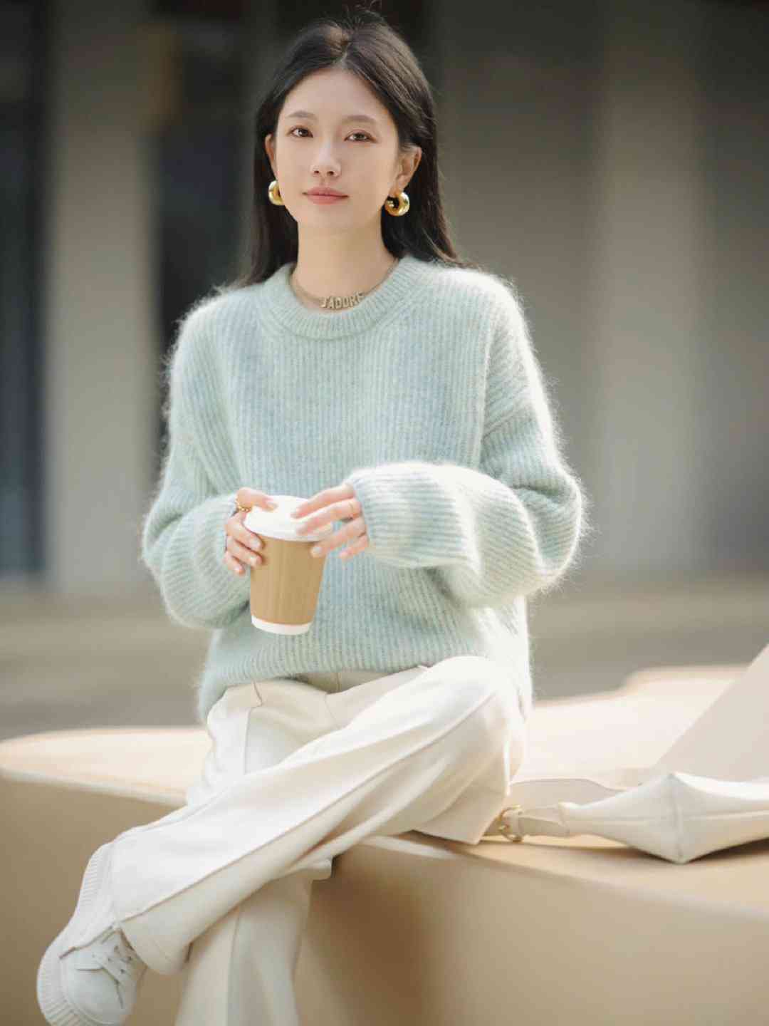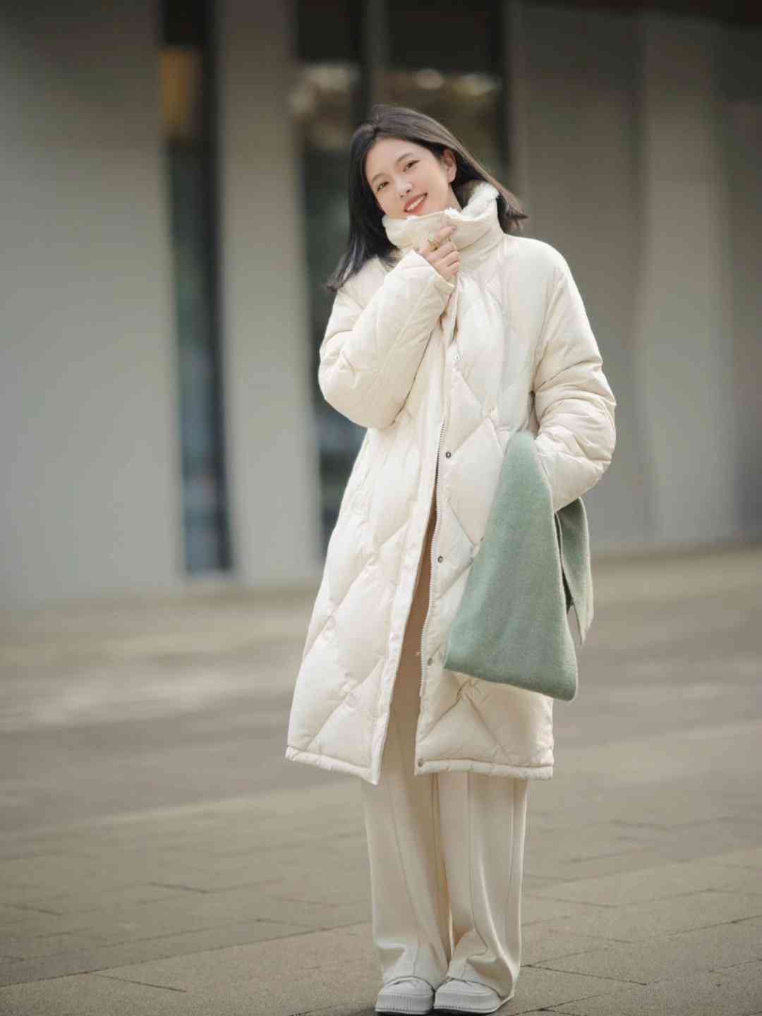 喜歡低飽和度顏色的你,就可以用杏色的羽絨服內(nèi)搭淺綠色針織衫,加上一套闊腿褲和休閑鞋,也是非常不錯的選擇,清純又漂亮大氣。