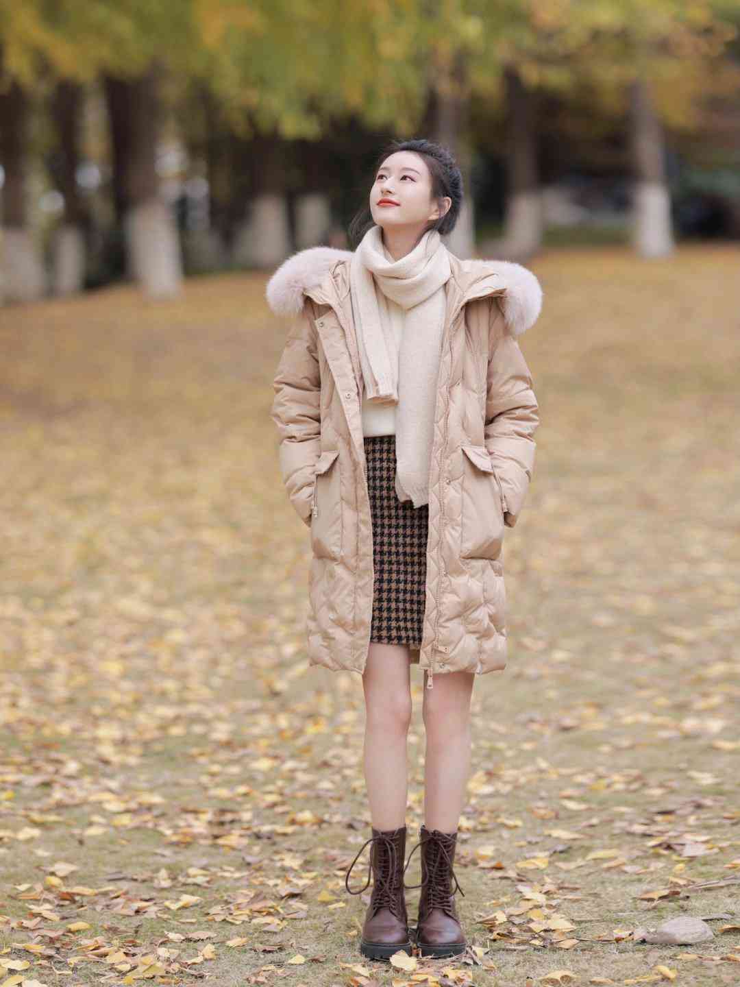 羽絨服也能穿出初戀女友模樣,下面這套穿搭就能展現(xiàn)出少女感的氛圍感,扎著高高的丸子頭發(fā)型,身穿一件淺黃色的羽絨服外套,內(nèi)搭打底衫和格子短裙,帶著微微的笑容,甜美俏皮又洋氣,超好看的。