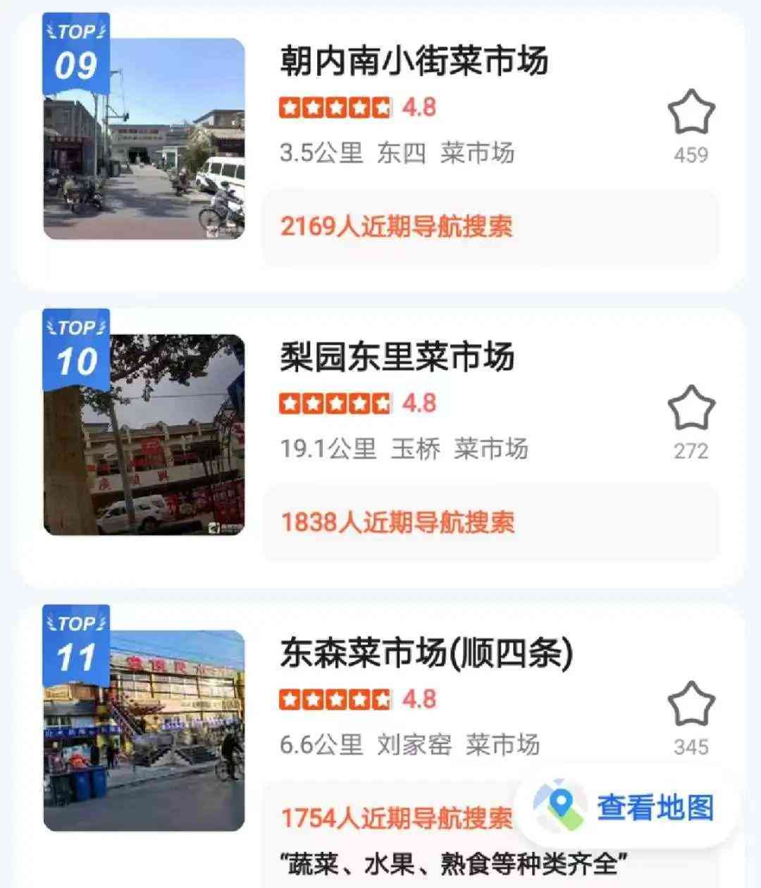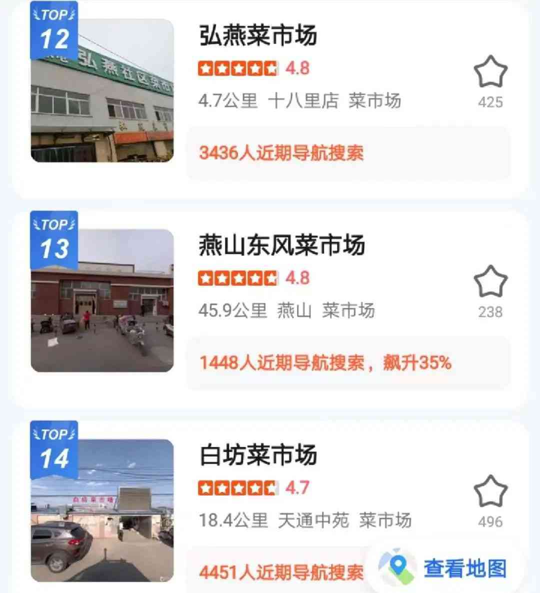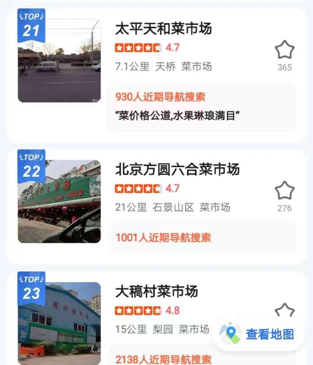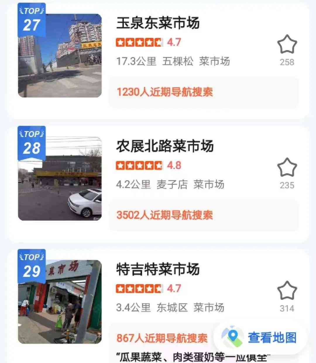 以上菜市場排名為“綜合排序”名次。除此之外,還可按照“導(dǎo)航人氣”、“好評優(yōu)先”、“距離優(yōu)先”排名,選擇的標(biāo)簽不同,排名也會發(fā)生變化。