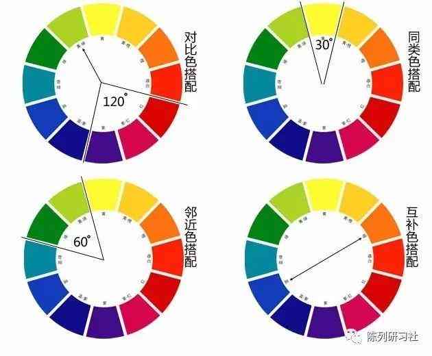 類似色——也稱近似色,色相環(huán)中相差30度—60度的顏色都是近似色;如黃色和綠色;黃色和橙色;紅色和橙色等;