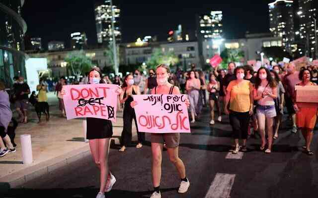 在特拉維夫,抗議者封鎖了廣場周圍的道路,并高呼:“不,并不意味著沒有,難道你們還不明白哪一部分嗎?“”這是政策造成的錯(cuò)誤?!薄皦蛄耍l責(zé)強(qiáng)奸犯吧!”