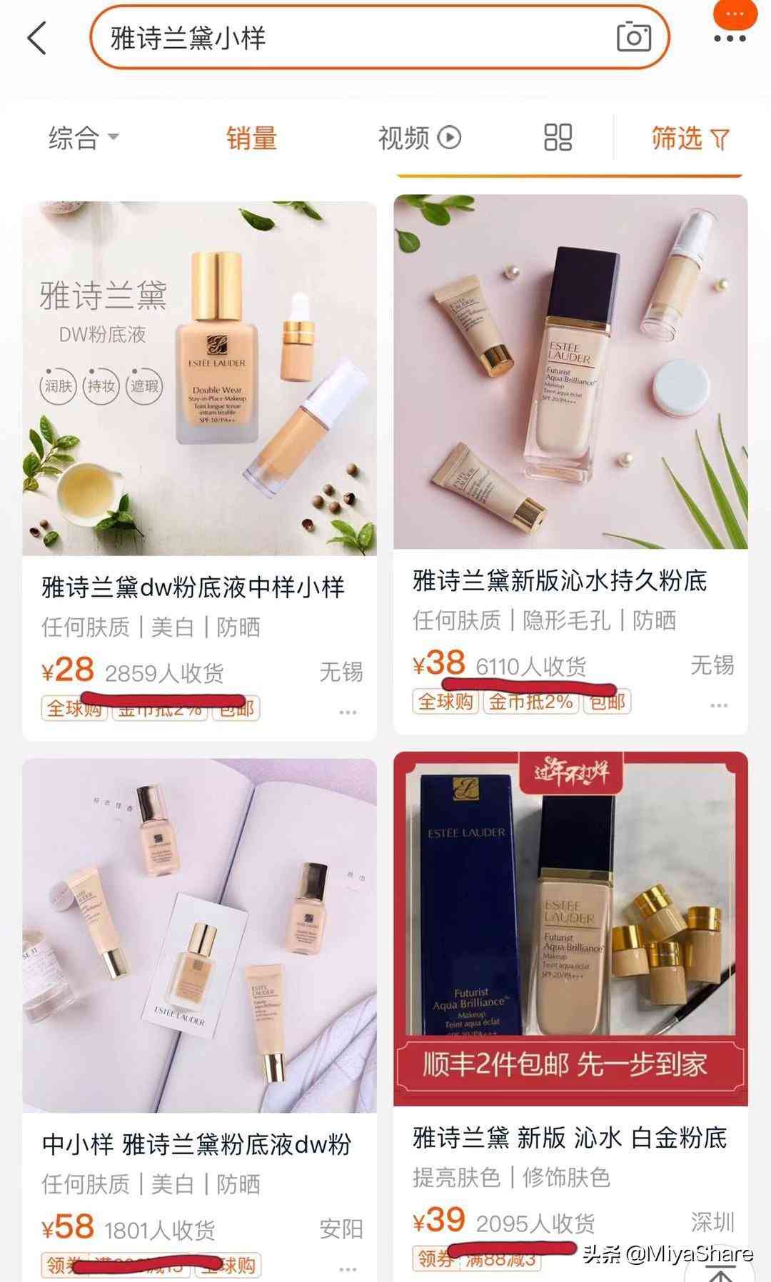某某正裝產(chǎn)品千元一支,小樣算下來性價比更高??雌饋砗苡姓T惑力。除了小樣,還有各種大牌產(chǎn)品的分裝,看起來也是物美價廉。