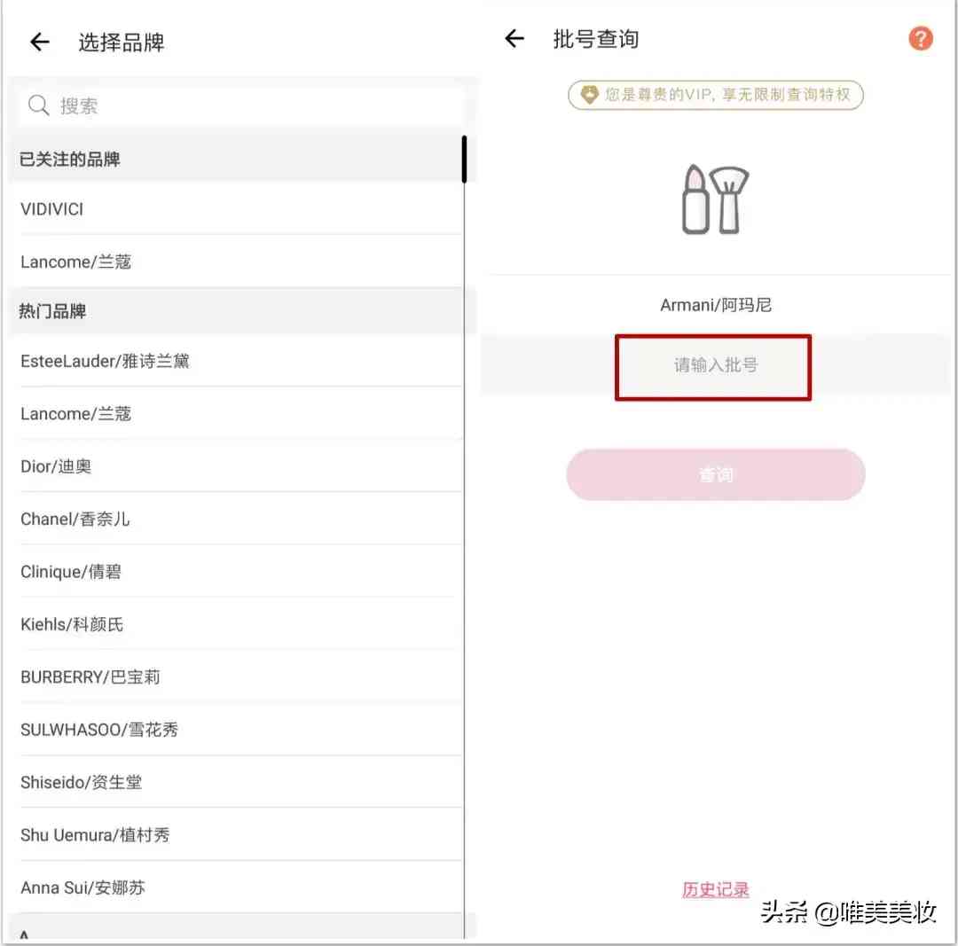 化妝品是用在臉上的東西,千萬大意不得,唯美美妝為用戶考慮,特地開發(fā)了批號查詢功能,為小仙女查檢自己購買的產(chǎn)品是否是正品提供一定的數(shù)據(jù)支持。