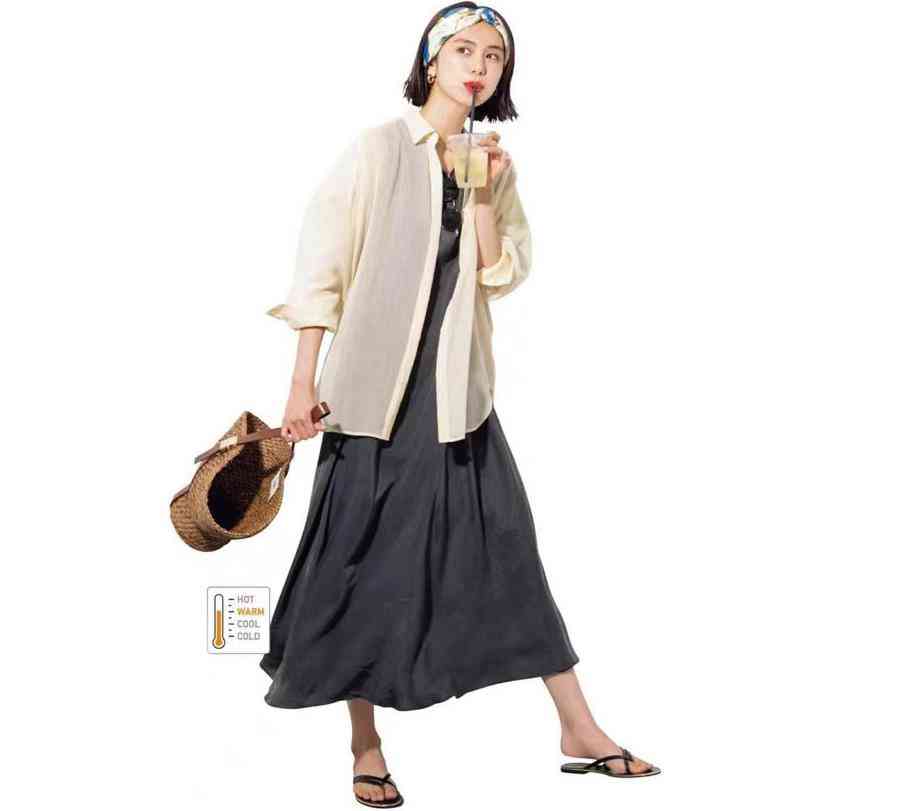 從高雅的針織衫到休閑的大襯衫,外搭一變,風(fēng)格迥然。再配合涼鞋、菜籃包、發(fā)帶,是不是要去逛街買菜?嘿嘿。