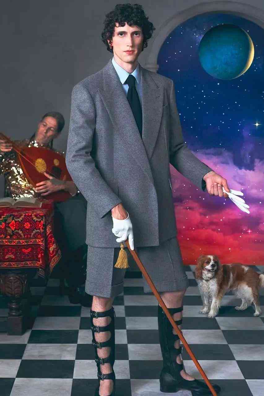 GUCCI日前發(fā)布2023早春系列「Cosmogonie」Campaign,這場于蒙特城堡舉行的大秀,其八角形塔樓為現(xiàn)場增添一絲神秘色彩,詩人、數(shù)學(xué)家、天文學(xué)家、哲學(xué)家等角色走在跑道上,現(xiàn)卻被重現(xiàn)于Campaign中。服飾方面,來自十六世紀(jì)的荷葉邊、維多利亞風(fēng)格的靴子、40年代的廓形、70年代的光學(xué)圖案、新款A(yù)phrodite手袋以及更多元素匯聚在一起,卻毫無違和感。超現(xiàn)實的背景搭配「不合時宜」的服飾、妝容與發(fā)型,非常符合Alessandro Michele時代的GUCCI風(fēng)格。