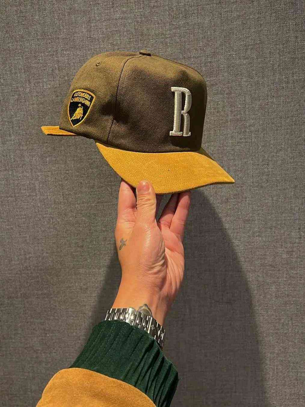 曝光的照片中,包含兩件該系列服飾類單品,橫紋材質(zhì),疑似是夾克或襯衫產(chǎn)品,采用深橄欖綠色,配有RHUDE和Lamborghini的標(biāo)簽與名牌;另一頂同樣采用深橄欖綠搭配棕黃色的鴨舌帽看起來也是質(zhì)感十足,帽身還印有Lamborghini品牌標(biāo)志「R」字母刺繡表明身份。雖然只是部分曝光,但從僅有的用色設(shè)計和工藝質(zhì)感來看,已經(jīng)足夠令人期待。此外,同步被Rhuigi曬出的還有.款Huracán Sterrato,車頭裝有特殊凸起裝置,暫不清楚是否也與本次RHUDE聯(lián)名有額外聯(lián)系。眾所周知,Rhuigi個人就是狂熱的超跑愛好者,收藏的稀有Lamborghini也讓眾人艷羨,這次的聯(lián)名,屬實是「熱愛」到頭了。當(dāng)然,超跑還是交給實力玩家們關(guān)注,我們繼續(xù)密切關(guān)注此次聯(lián)名系列的服飾類單品正式與我們見面。