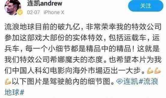《流浪地球》憑借“硬科幻”驚艷了觀眾一把,沒想到的是參與影片特效的基本上都是中國的特效公司,更令人驚訝的是,其中竟然有連凱旗下的特效公司,有網(wǎng)友還以為連凱是演員轉幕后開公司,沒想到本人回復,做特效才是本行,演戲才是副業(yè)。