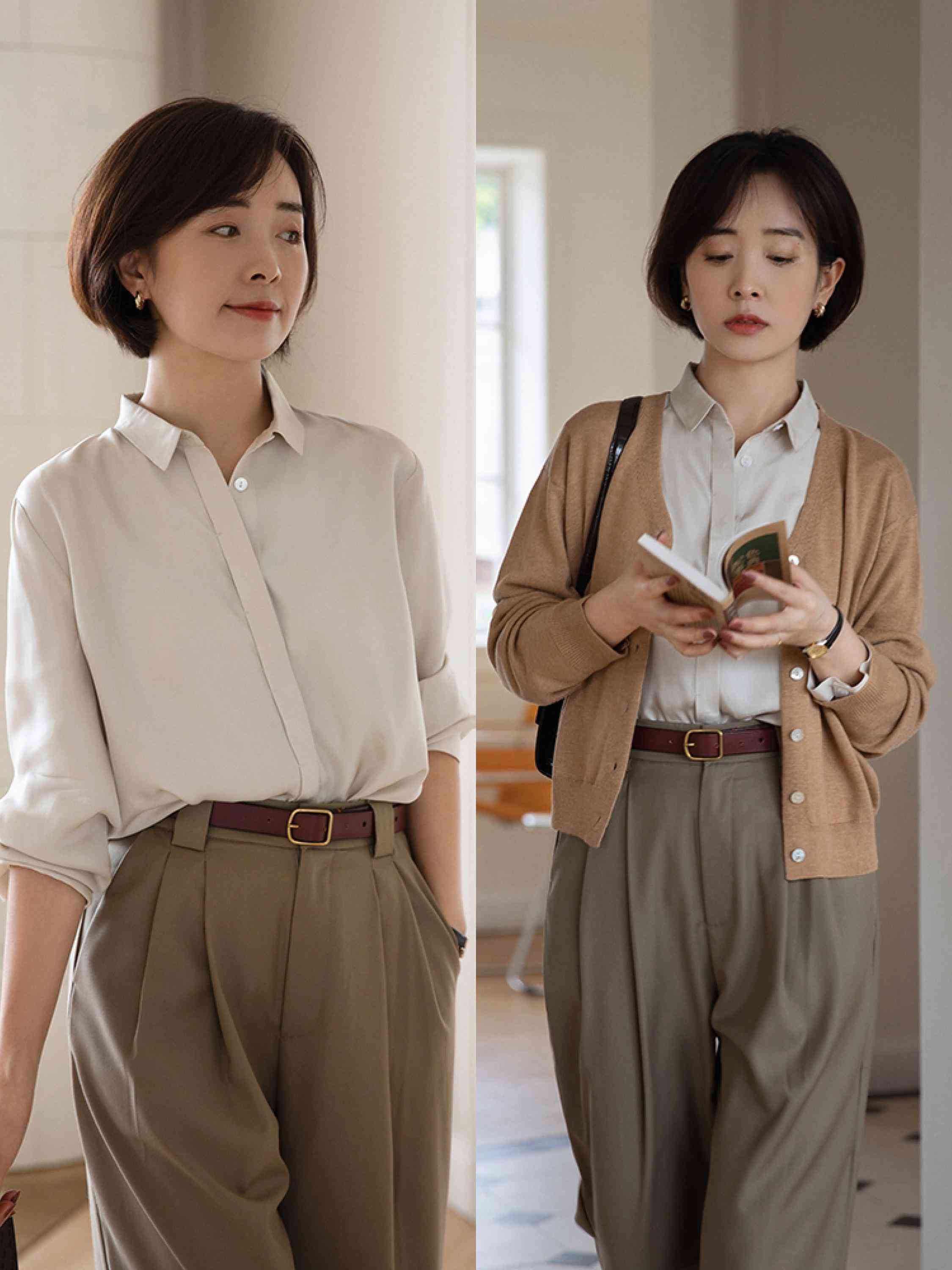 穿襯衫的時(shí)候,大家也可以考慮這種稍微寬松一些的設(shè)計(jì),因?yàn)榫o身的襯衫穿在身上實(shí)在是太容易顯得嚴(yán)肅了,這種寬松的襯衫穿在身上會(huì)增添一丟丟慵懶的氣息,讓我們的整體穿搭風(fēng)格看上去更時(shí)髦,不會(huì)覺(jué)得單調(diào)。
