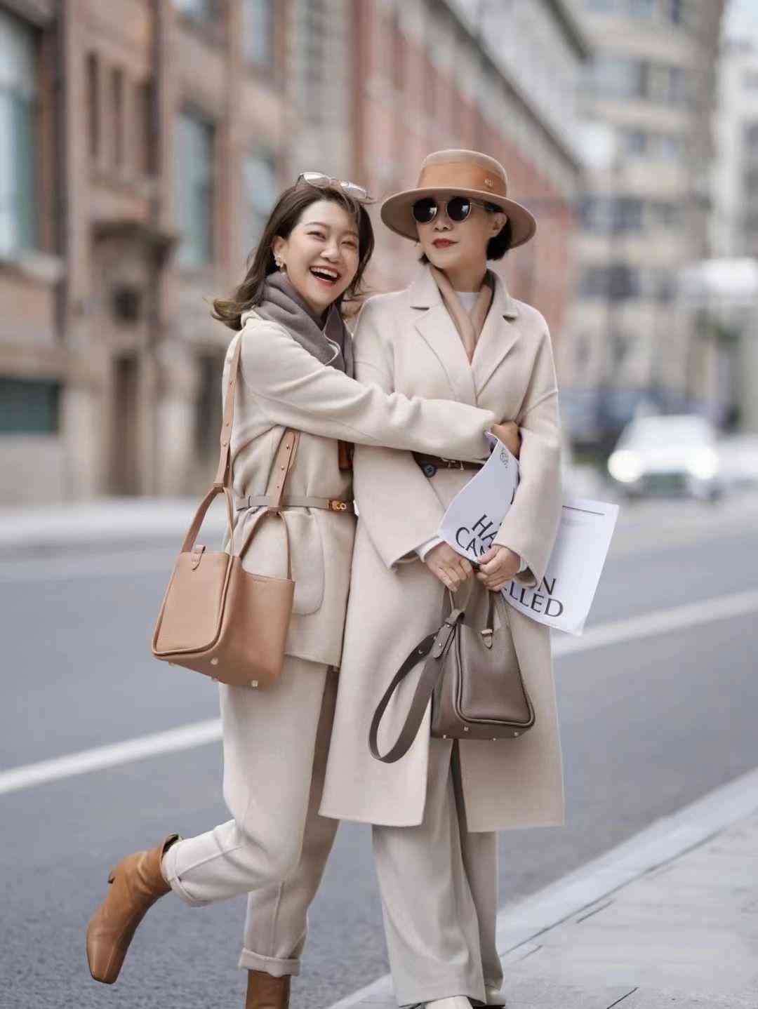 博主鹿鹿媽基本上都是圍繞著這兩點(diǎn)進(jìn)行配色,比如穿米色系大衣時(shí),通過采用同色系思路實(shí)現(xiàn)實(shí)現(xiàn)延伸,一方面放大了米色系的柔和與婉約,整體造型的質(zhì)感都上升了,另一方面,也可以修飾身材。