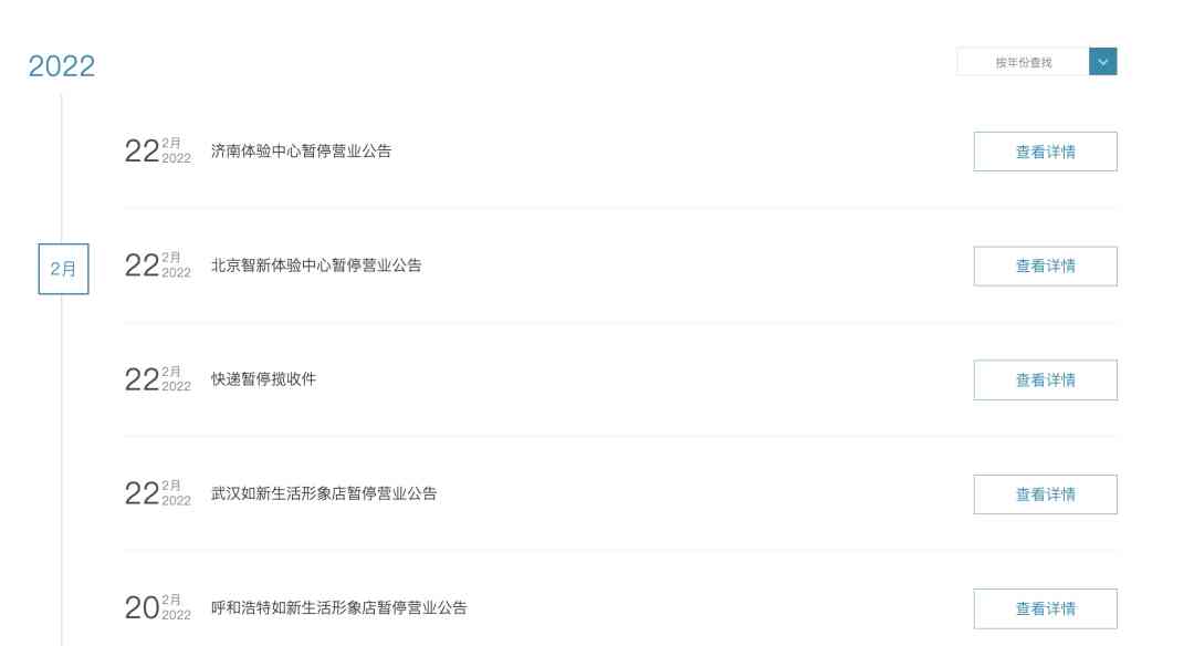 在武漢等地通報疫情情況后,2月22日,如新發(fā)布了濟南、武漢、北京、呼和浩特4地店鋪暫停營業(yè)的公告。公告稱,停業(yè)原因為配合疫情防控工作,恢復(fù)營業(yè)時間待進一步通知。