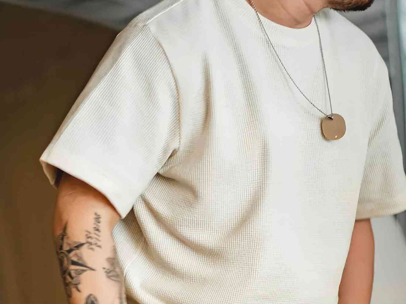 如果體重沒有超過200斤的話,這款T推薦給你,是非常有男人味的一款。顏色不多但每一種都很有氣質(zhì),米色不顯黑很溫柔,灰色給人一種紳士的感覺,咖啡色就很氣質(zhì)蠻復古的。這款T恤拿在手上有點分量,上身不會覺得很壓肩膀而且很涼爽,夏天搭配個漁夫帽非常好看。