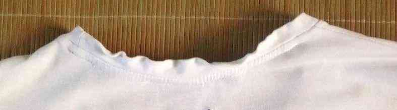 有的人買T恤,穿一段時間就變成荷葉領,原因就是領子的做工太差: