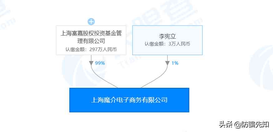 據(jù)天眼查顯示,“魔介”商標屬于上海魔介電子商務(wù)有限公司,法定代表人是李婧瑜,公司成立于2017年7月7日,實繳資本 240萬人民幣,最大股東是上海富嘉股權(quán)投資基金管理有限公司持股297萬人民幣,李憲立持股3萬人民幣,而最終受益人是魏長有。