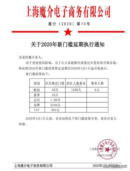 據(jù)悉,魔介現(xiàn)有五個代理級別,分別為VIP、金牌、總代、董事、聯(lián)創(chuàng),門檻分別為384元、3240元、1.98萬元、18萬元、50萬元。除了聯(lián)創(chuàng)要求團隊總?cè)藬?shù)1500人、董事6人外,其他級別打款就可以升級。例如:1)VIP:隨時APP下單產(chǎn)品,無需購買魔介粉;2)金牌:200魔介粉起(就是每次購買魔介粉200元起);3)總代:500魔介粉起(就是每次購買魔介粉500元起);4)董事:5000魔介粉起(就是每次購買魔介粉5000元起);5)聯(lián)創(chuàng):10000魔介粉起(就是每次購買魔介粉10000元起),備注:1魔介粉=1元。