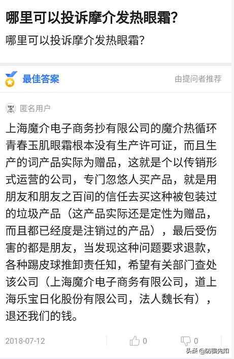 相關(guān)投訴截圖