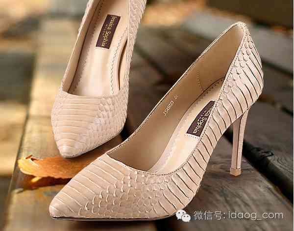 裸色蛇皮尖頭淺口細跟工作鞋