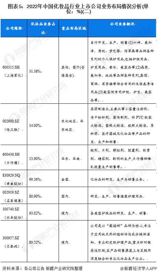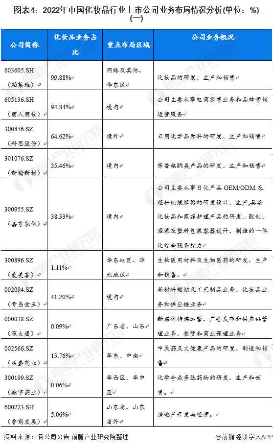 2、化妝品行業(yè)上市公司業(yè)務(wù)布局對(duì)比