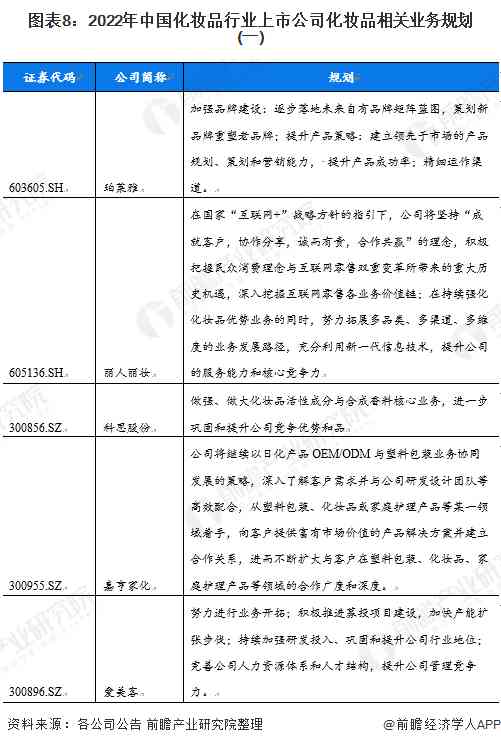 4、化妝品行業(yè)上市公司業(yè)務(wù)規(guī)劃對(duì)比