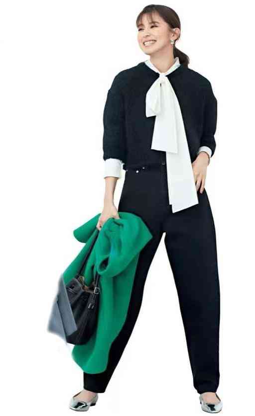 黑毛衣搭配黑褲子,人人都會(huì)穿。可懂得突破單一沉悶的時(shí)髦精并不太多。內(nèi)搭白色飄帶襯衫,大量感招搖的系帶,用其無(wú)比浮夸的華麗為一身黑注入浪漫。
