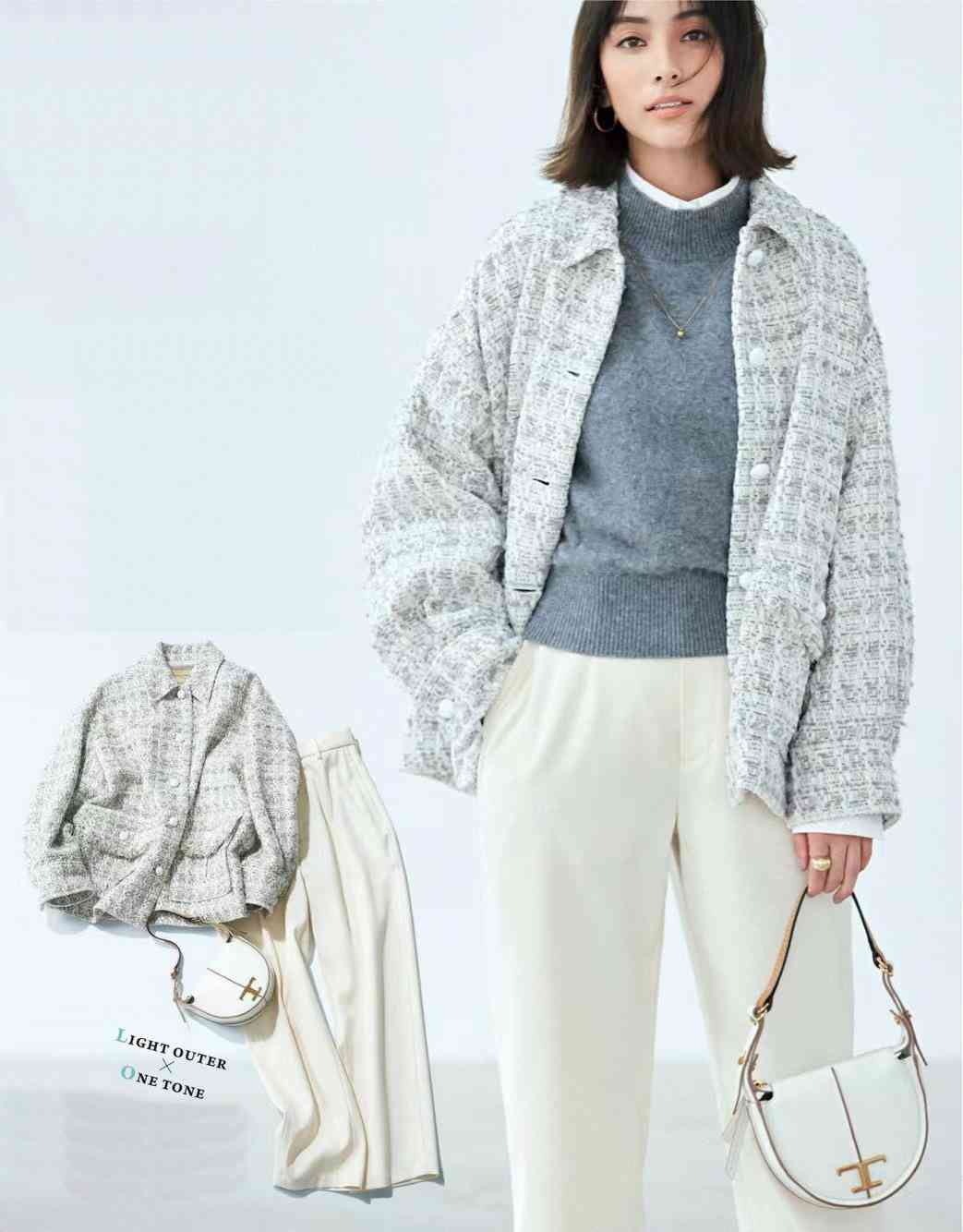 早晚冷、中午熱,層層重疊之下,脫穿都是難題。不得不多加一件的穿搭行為,又考驗(yàn)著整體層次美感。