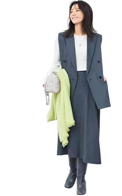 灰色馬甲半裙套裝,利用女人味為高級(jí)灰樹(shù)立風(fēng)格標(biāo)簽。內(nèi)搭白色基本款,吟唱著經(jīng)典之曲,隨和而不平庸,平凡卻有調(diào)性,最耐人尋味。