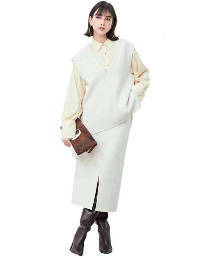 V領(lǐng)馬甲半裙套裝,凜然之余還給女人味營(yíng)造留足空間。內(nèi)搭襯衫可正式,也可華麗,風(fēng)格隨你變。下圖中,一件米黃色襯衫,寫(xiě)滿(mǎn)簡(jiǎn)約與利落。