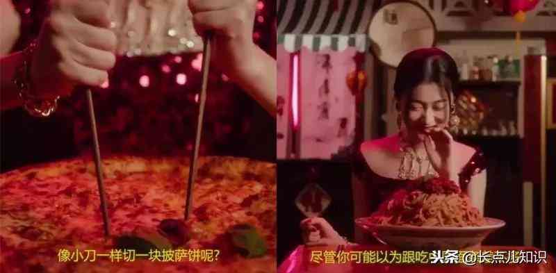 用筷子切披薩,對著意大利面傻笑。難道他們覺得,中國人分不出炸醬面和意大利面?侮辱完我們的智商,又開始自以為是地夸自己: