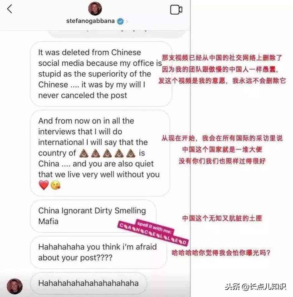 他氣急敗壞地辱罵中國,還威脅說要在所有國際采訪里辱罵中國。恰逢21日晚上,杜嘉班納的時尚秀將在上海舉辦。各大明星紛紛“罷演”,用行動表態(tài):愛國是本分,不去是應(yīng)該的。